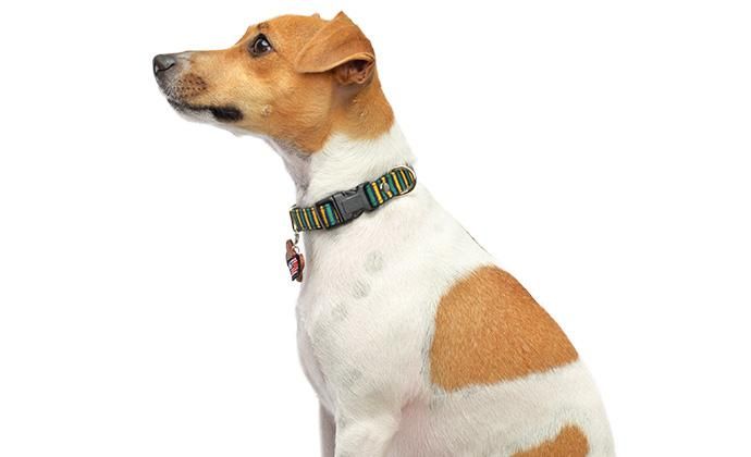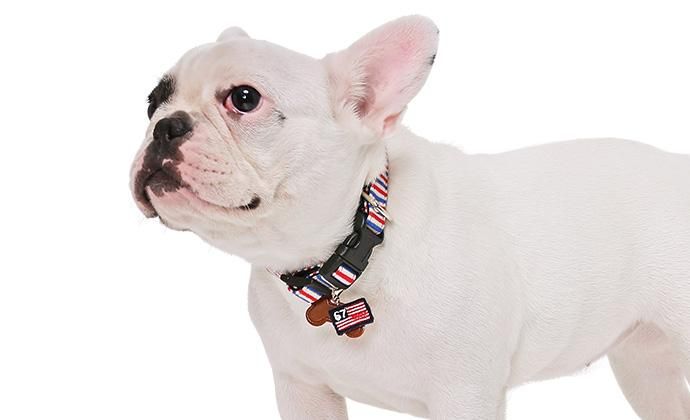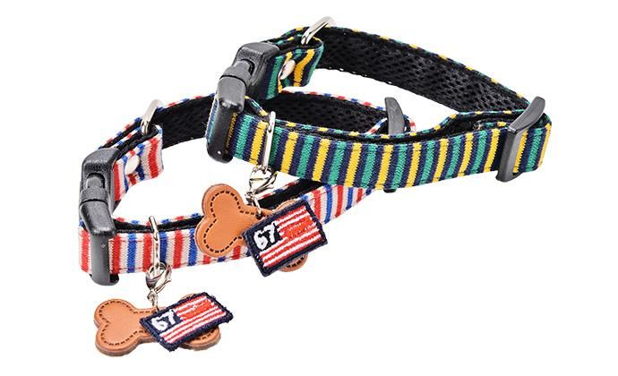 スタイリッシュなマルチストライプ柄がカジュアルな印象の犬首輪。