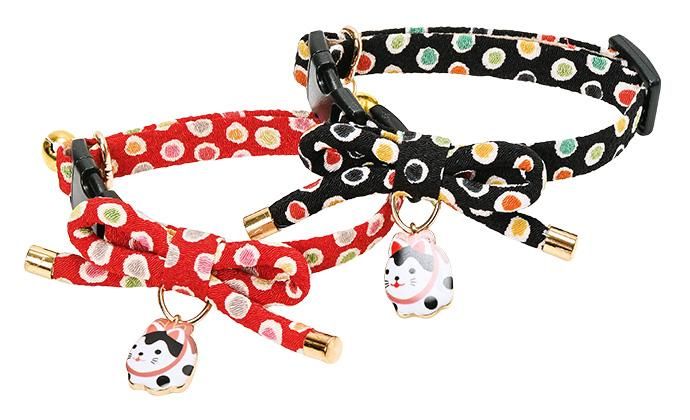 水玉模様のちりめん生地が はんなり可愛い猫ちゃん用首輪です。