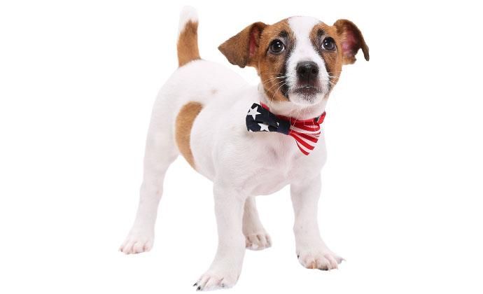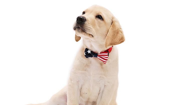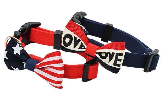 星条旗柄と『LOVE』のリボンが 存在感バツグン!の犬用首輪。