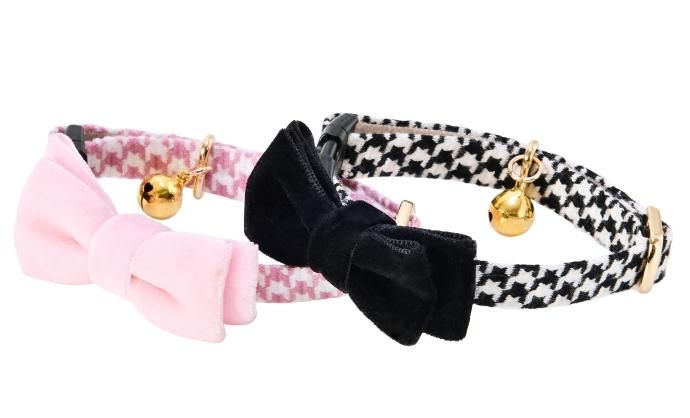 千鳥格子柄が上品な猫首輪。