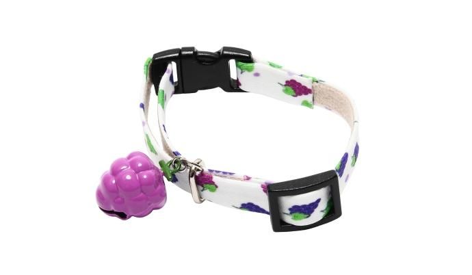 ぶどう柄のベルトが爽やかな猫首輪。