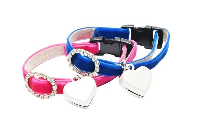 ベロア生地のベルトにキラキラバックルを合わせ、可愛いを詰め込んだ猫首輪。
