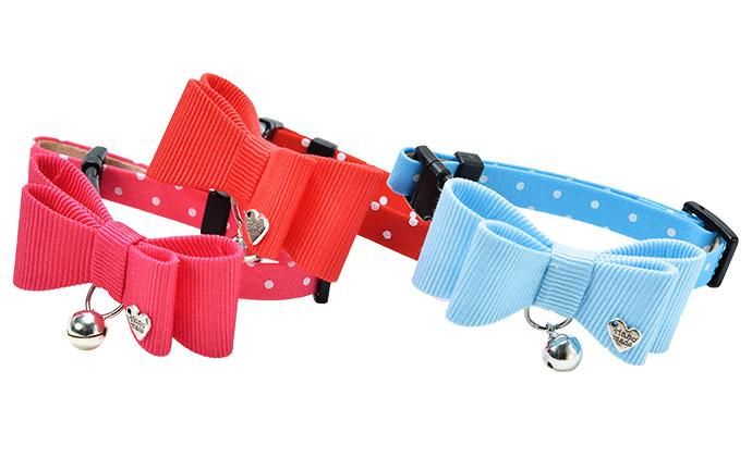 立体的なグログランのリボンが付いた 猫ちゃん用の首輪。