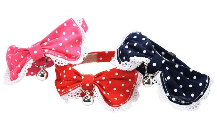 水玉模様の衿がかわいい バンダナタイプの猫首輪です。